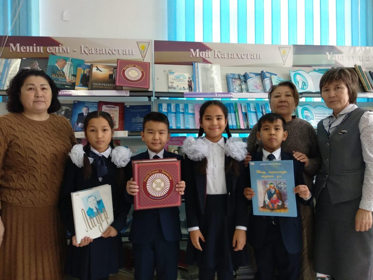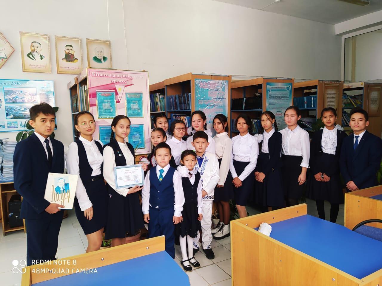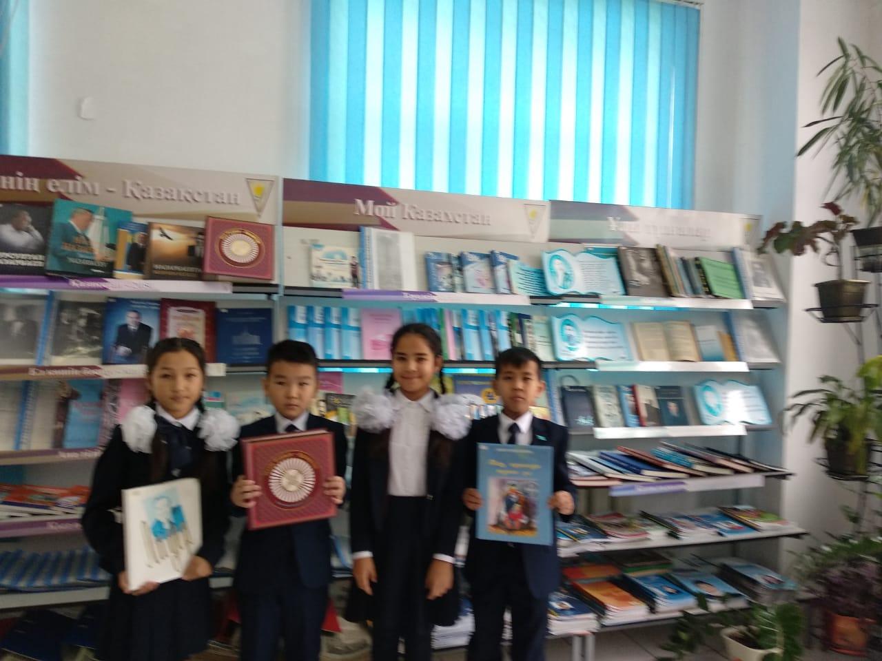 03.12.2019ж. күні мектебіміздің кітапханашылары Б.С.Қошқарбаева, С.М.Жанболатова "1-желтоқсан Тұңғыш президент күні қарсаңында мектеп оқушыларының қатысуымен Ш.Күмісбайұлы "Таң нұрында туған ұл" атты кітабына шолу жасады.