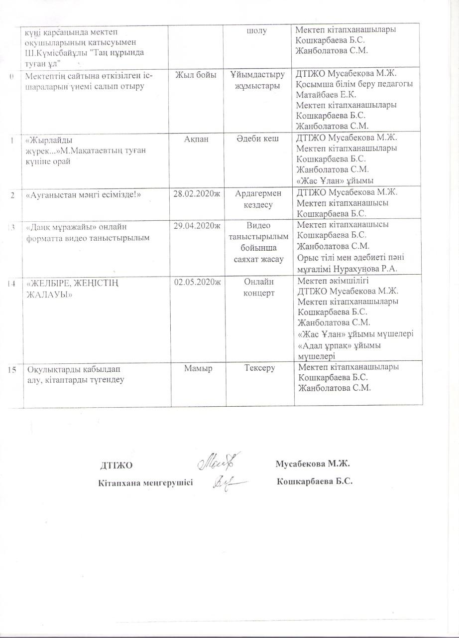 28 тамыз 2019 0 1 2 3 4 5 И.Қ.Мандоки атындағы № 154 жалпы білім беретін мектептің кітапханашысы мен әкімшілігінің бірлескен жұмыс жоспары 2020 -2021 оқу жылы Осы беттің QR-коды:QR-код этой страницы: