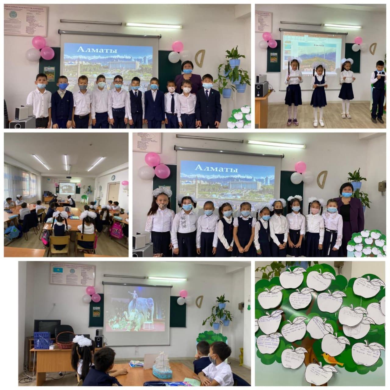 Алматы қаласының қала күніне орай, 2021-2022 оқу жылындағы мектепішілік жоспары бойынша қыркүйек айының 7-9 күндері аралығында бастауыш сынып мұғалімдері А.Е.Кайдалинова, Қ.Ө.Бектас және Б.Б.Жайлаубекова "Менің сүйікті қалам" тақырыбында тәрбие сағатын өткізді.