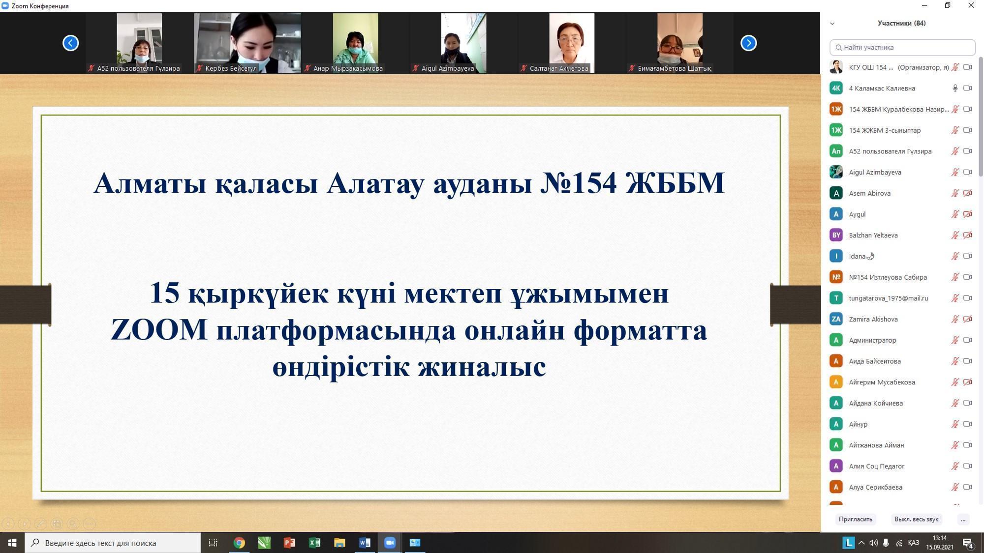 Бүгін, 15 қыркүйек күні мектеп ұжымымен ZOOM платформасында онлайн форматта өндірістік жиналыс өткізілді.