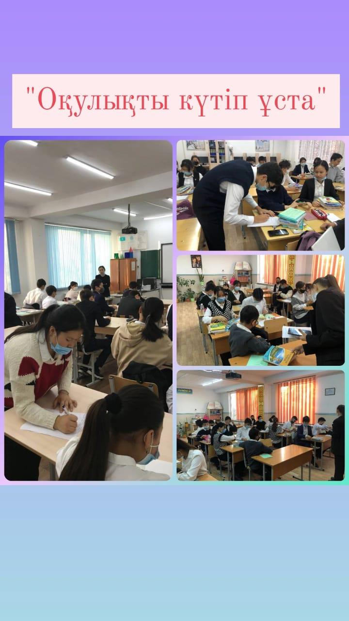 2021-2022 оқу жылының басынан "ОҚУЛЫҚТЫ КҮТІП ҰСТА!" ұранымен Жас сұңқар" өзін-өзі басқару ұйымының "Құқық және тәртіп" фракциясының жетекшісі 10 "Б" сынып оқушысы Копбаева Маржан, Еренші Нұрдәулет және "Балалар өкілдігі" жетекшісі 11 "Ә" сынып оқушысы Әлімжан Әнуар мектеп оқушылары оқулықтарының күтімі бойынша өз жұмыстарын жүргізді.