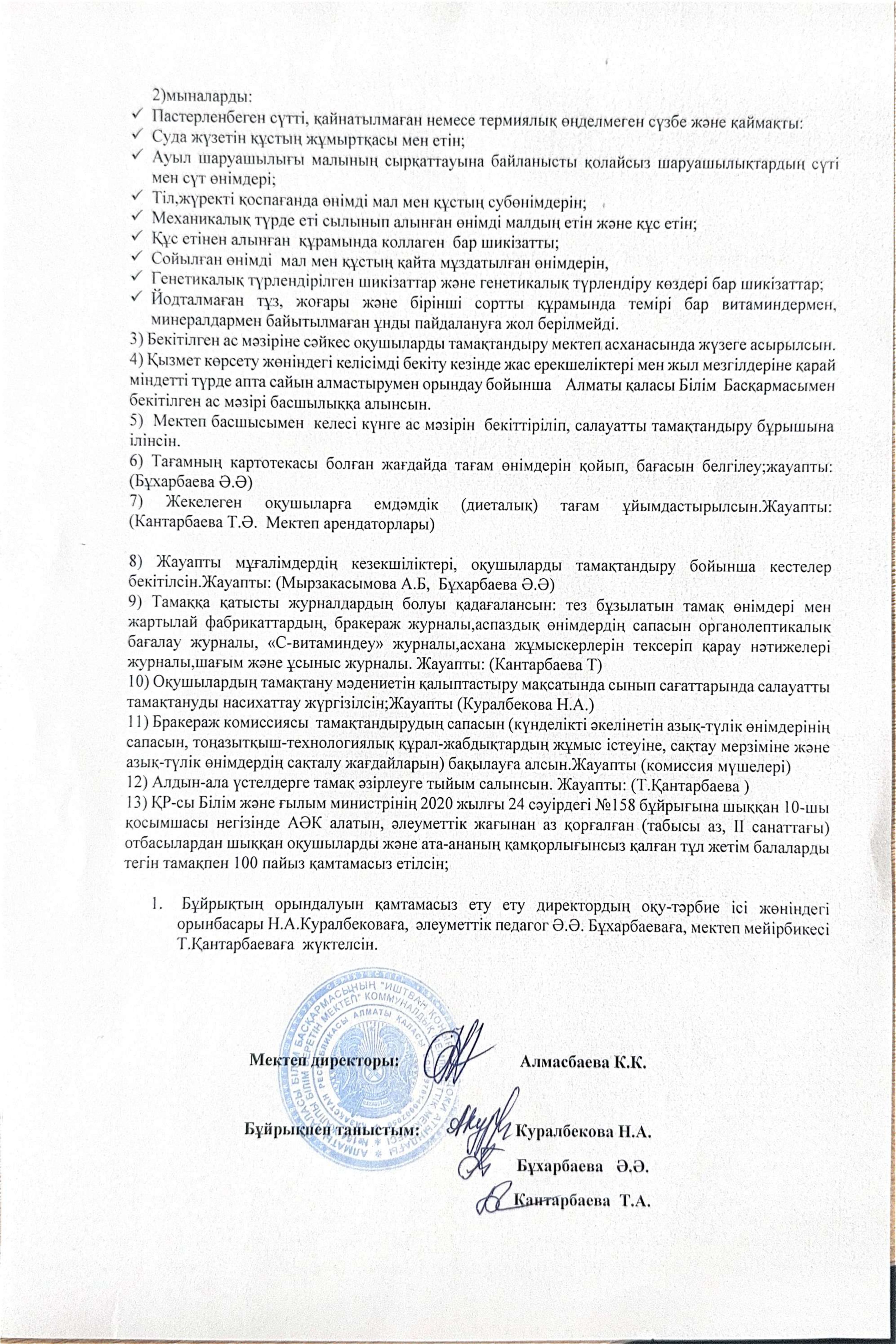 Мектеп асханасында тыйым салынатын өнімдерді пайдаланбау туралы бұйрық - 02.09.2025ж